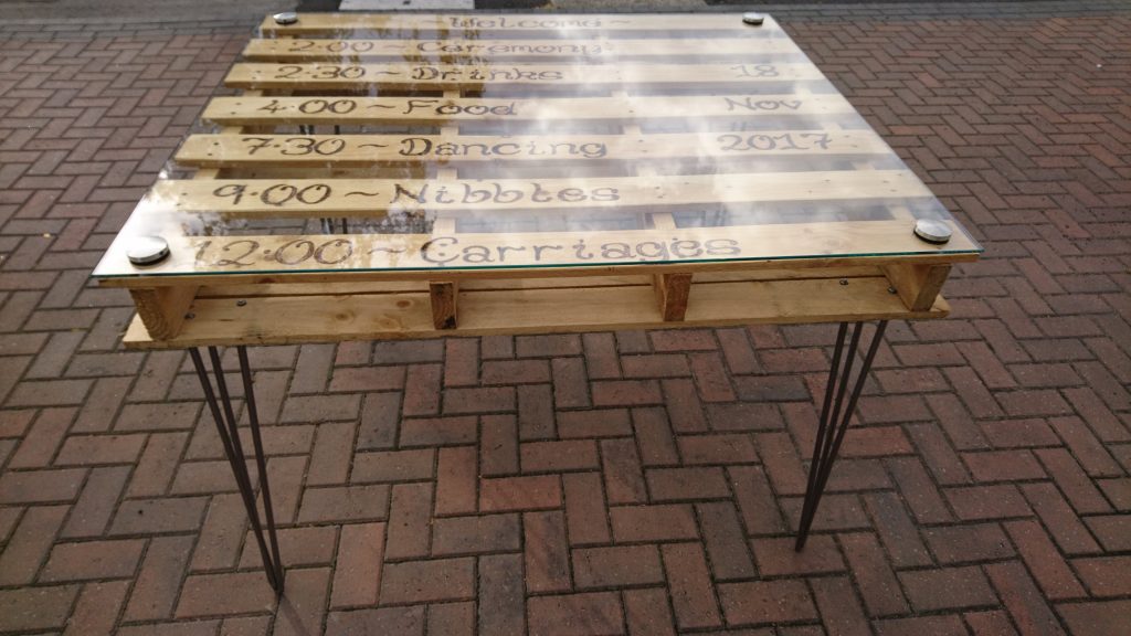 Outdoor Table made from Wedding Schedule Pallet Sign